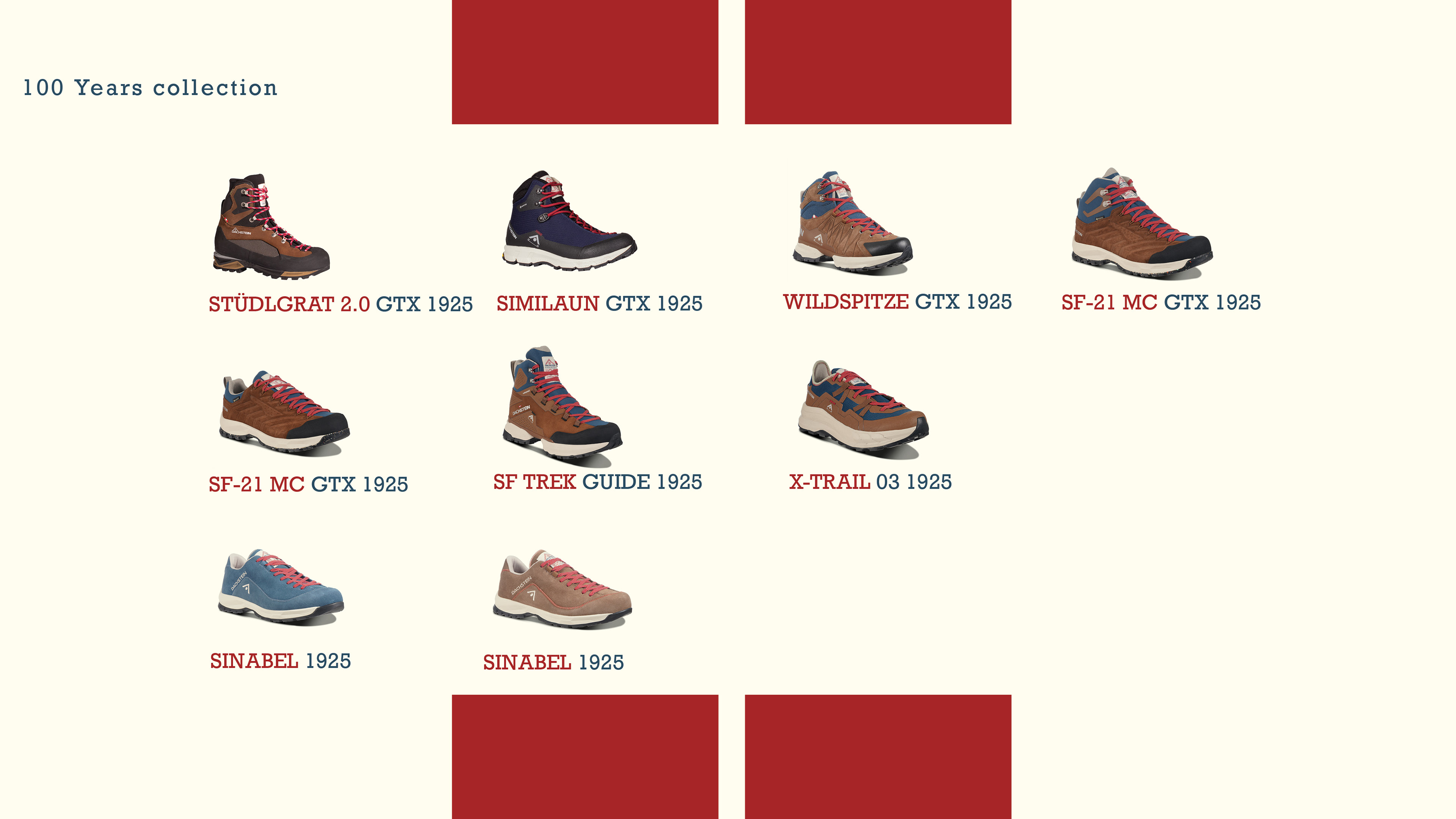 In 2025 we have an honour to start the 100-year anniversary celebrations and offer a whole anniversary collection with shoes for all adventures. Our 100th anniversary theme features the new shoe models with our retro logo and the anniversary colouring for a sporty yet retro look, inspired by the past to appeal the new generation’s modern hikers.